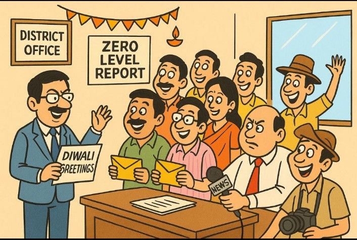 સવારથી જ તાલુકા કચેરીમાં મીઠાઈની સુગંધ સાથે અજાણી ચહલપહલ હતી. કચેરીના એક બાજુએ સરકારી અધિકારી પોતાના માટે કવર મેળવનાં પ્લાન બનાવી રહ્યા હતા, અને બીજી બાજુએ કથિત પત્રકારો લાઈન લગાવી રહ્યા હતા.