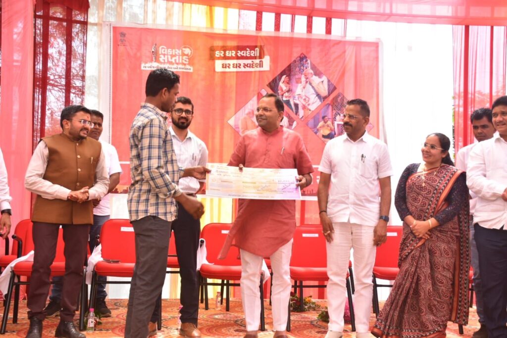 આ પ્રસંગે મંત્રીશ્રીના હસ્તે આદિમ જૂથ આવાસ યોજનાના ચાર લાભાર્થીને રૂ. ૪૦,૦૦૦ના ચેકનું વિતરણ, વ્હાલી દીકરી યોજના હેઠળ એક લાભાર્થીને રૂ. ૧,૧૦,૦૦૦ના મંજૂરી આદેશ અને વિધવા સહાય યોજના હેઠળ એક વિધવા લાભાર્થીને માસિક રૂ, ૧૨૫૦ના પેન્શનના હુકમનું વિતરણ કરવામાં આવ્યું હતું. ટીબીના નિદાન માટે રૂ. ૯.૫૦ લાખના ખર્ચે અત્યાધુનિક ટ્રુ નાટ મશીનની સુવિધા કપરાડા સામૂહિક આરોગ્ય કેન્દ્ર ખાતે ઉપલબ્ધ કરવામાં આવી છે જેનુ ઈ-લોકાર્પણ મંત્રીશ્રીના હસ્તે કરાયુ હતું. આ સાથે જ રૂ. ૪૧૩.૩૪ લાખના ૧૩ જેટલા ચેકડેમ કમ કોઝવેનું ખાતમુહૂર્ત અને રૂ. ૨૨૨.૭૪ લાખના ખર્ચે સાત જેટલા ચેકડેમ કમ કોઝવેનું લોકાર્પણ કરવામાં આવ્યું હતું. ગુજરાતની વિકાસ ગાથા દર્શાવતી ફિલ્મ સૌને બતાવવામાં આવી હતી. આ સાથે મંત્રીશ્રી સહિત સૌએ ભારત વિકાસ પ્રતિજ્ઞા લીધી હતી.